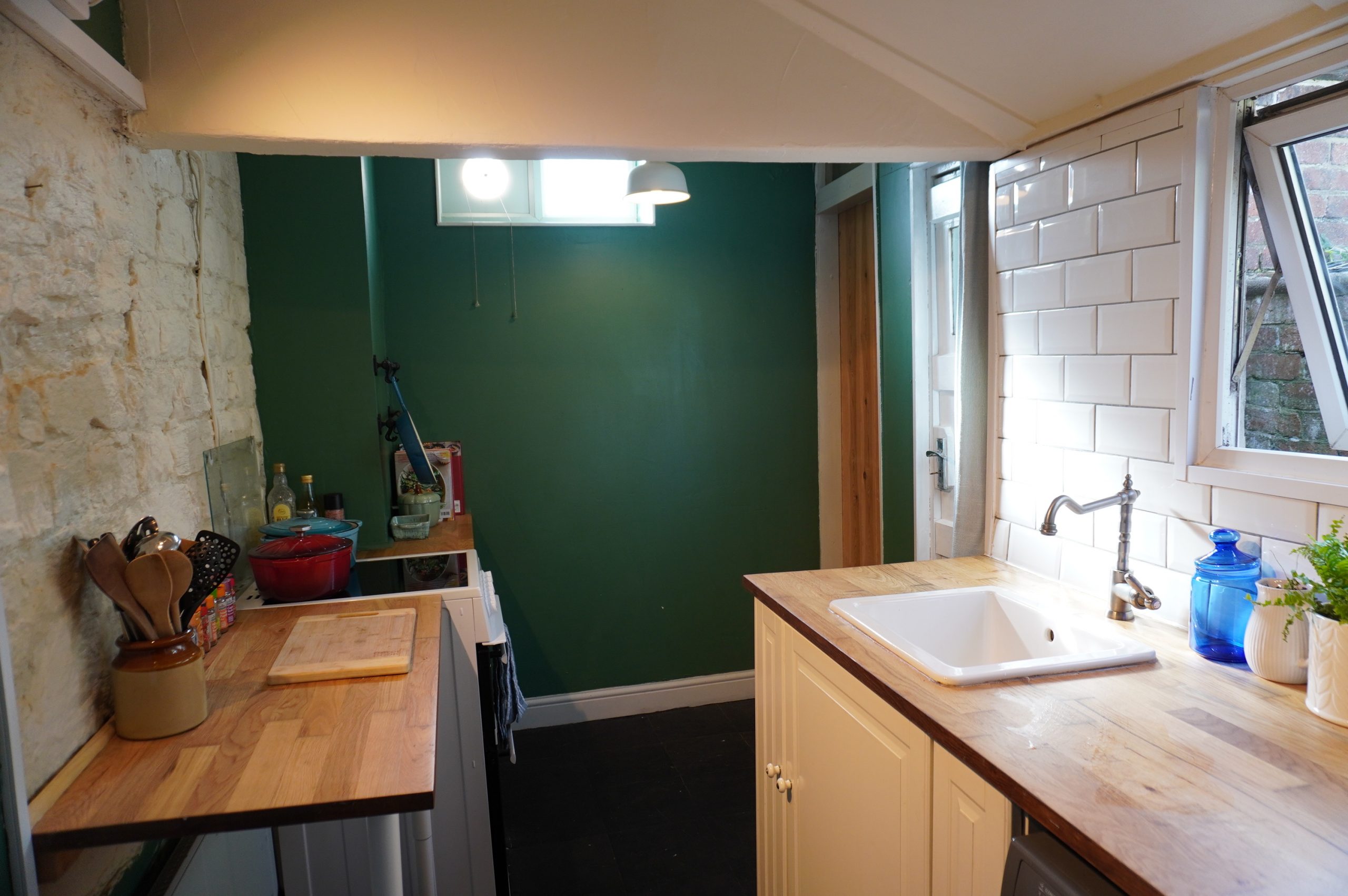 Charming cottage style kitchen featuring exposed stonework, wooden worktops and tiled splashbacks.