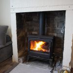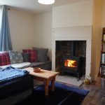 Cosy living room with a beautiful stone fireplace and log burner, creating a real focal point.