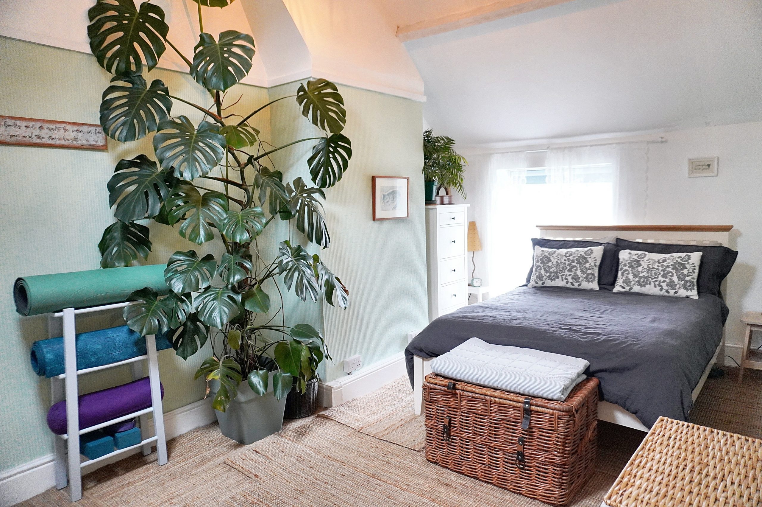 Original exposed floorboards add warmth and authenticity, balanced with a central heating radiator to keep the room cosy year-round. It’s a space that feels both restful and uplifting, the perfect place to begin and end each day.