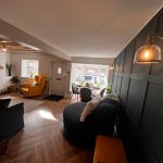 A beautifully panelled feature wall adds a stylish focal point, complemented by elegant wall lighting that brings a warm glow as day turns to dusk. Oak-effect herringbone flooring runs seamlessly throughout the ground floor, complete with underfloor heating to keep things toasty underfoot. Stairs rise to the first floor, discreetly positioned to one side, maintaining the natural flow of this gorgeous space.
