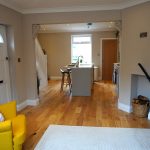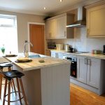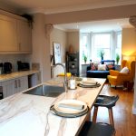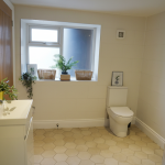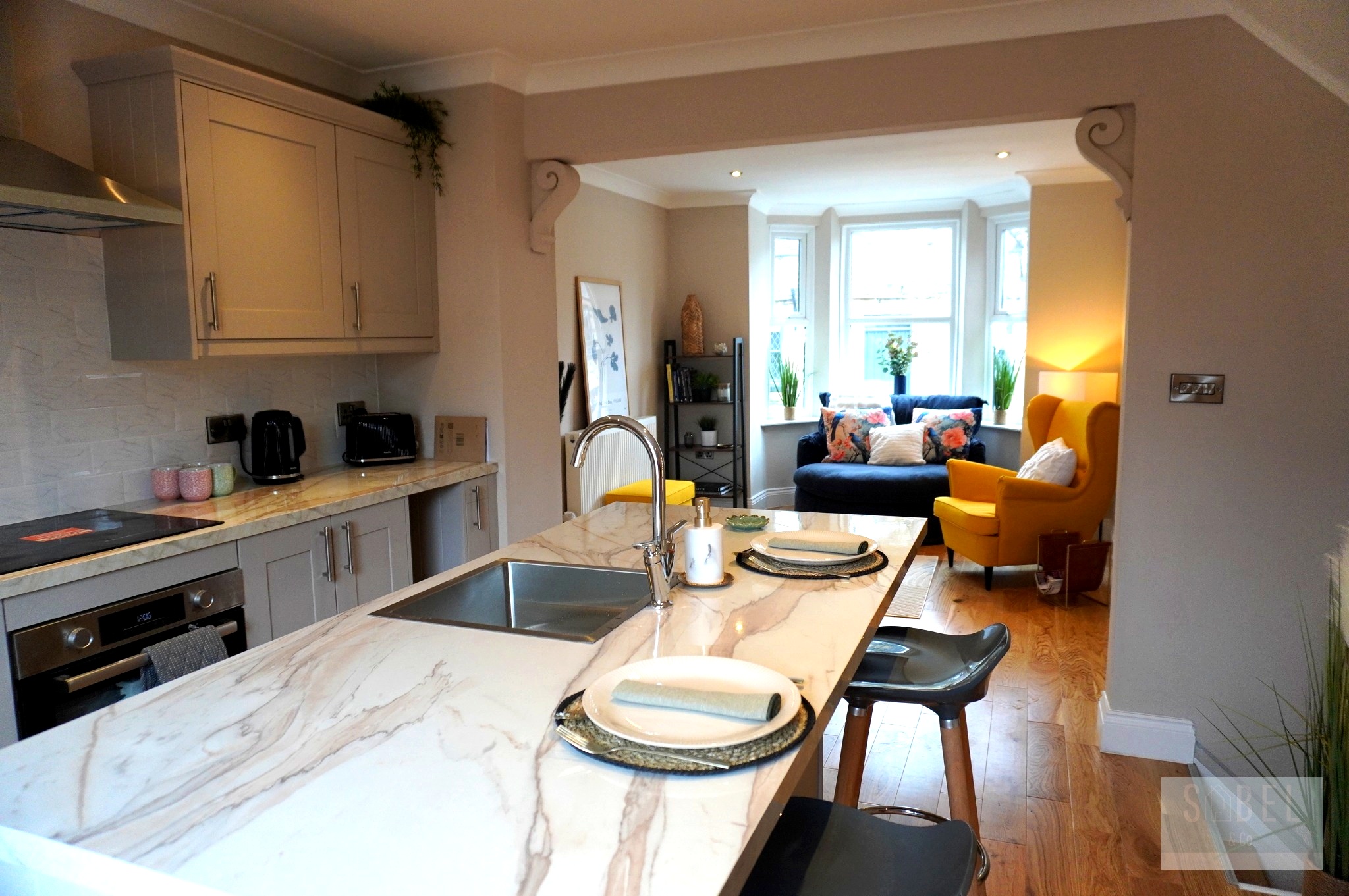 Integrated appliances include a dishwasher, wine fridge and built in double oven with induction hob and extractor over. A UPVC double glazed window to the rear elevation allows excellent natural light, while the open layout connects seamlessly with the living space beyond.