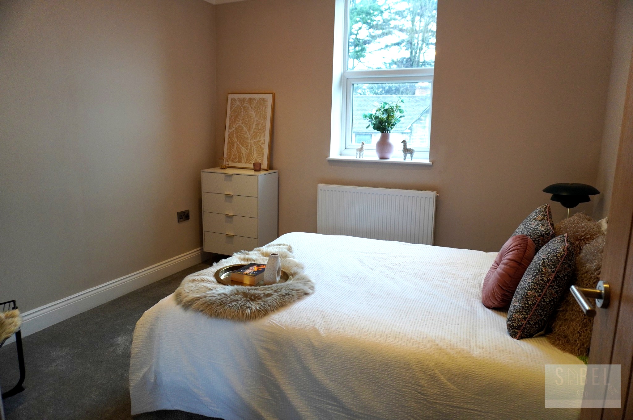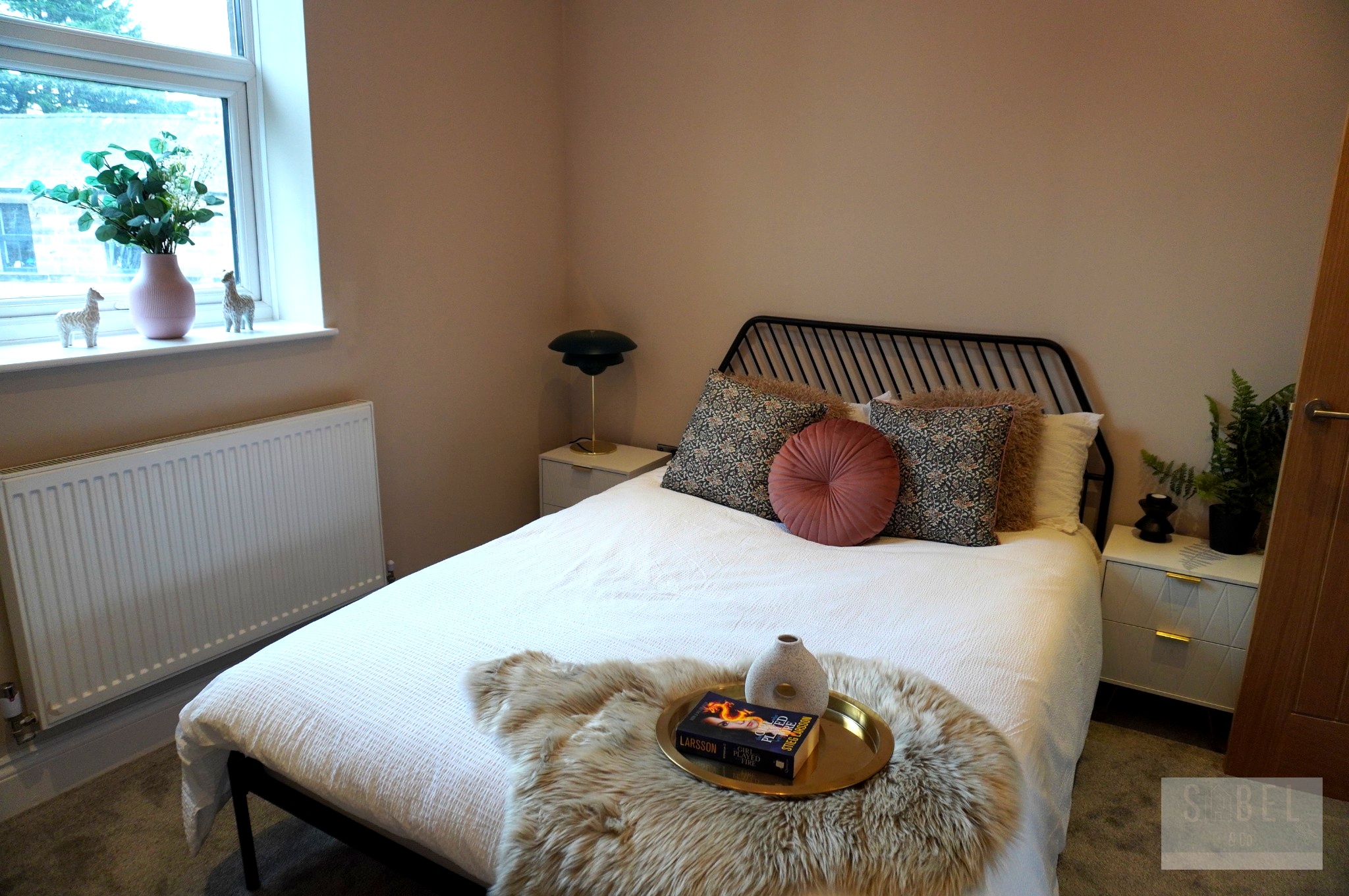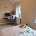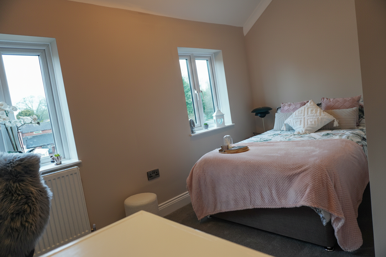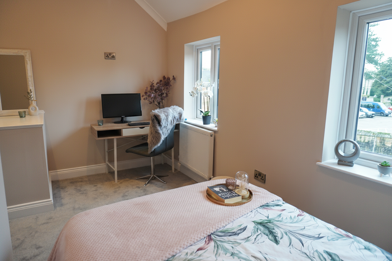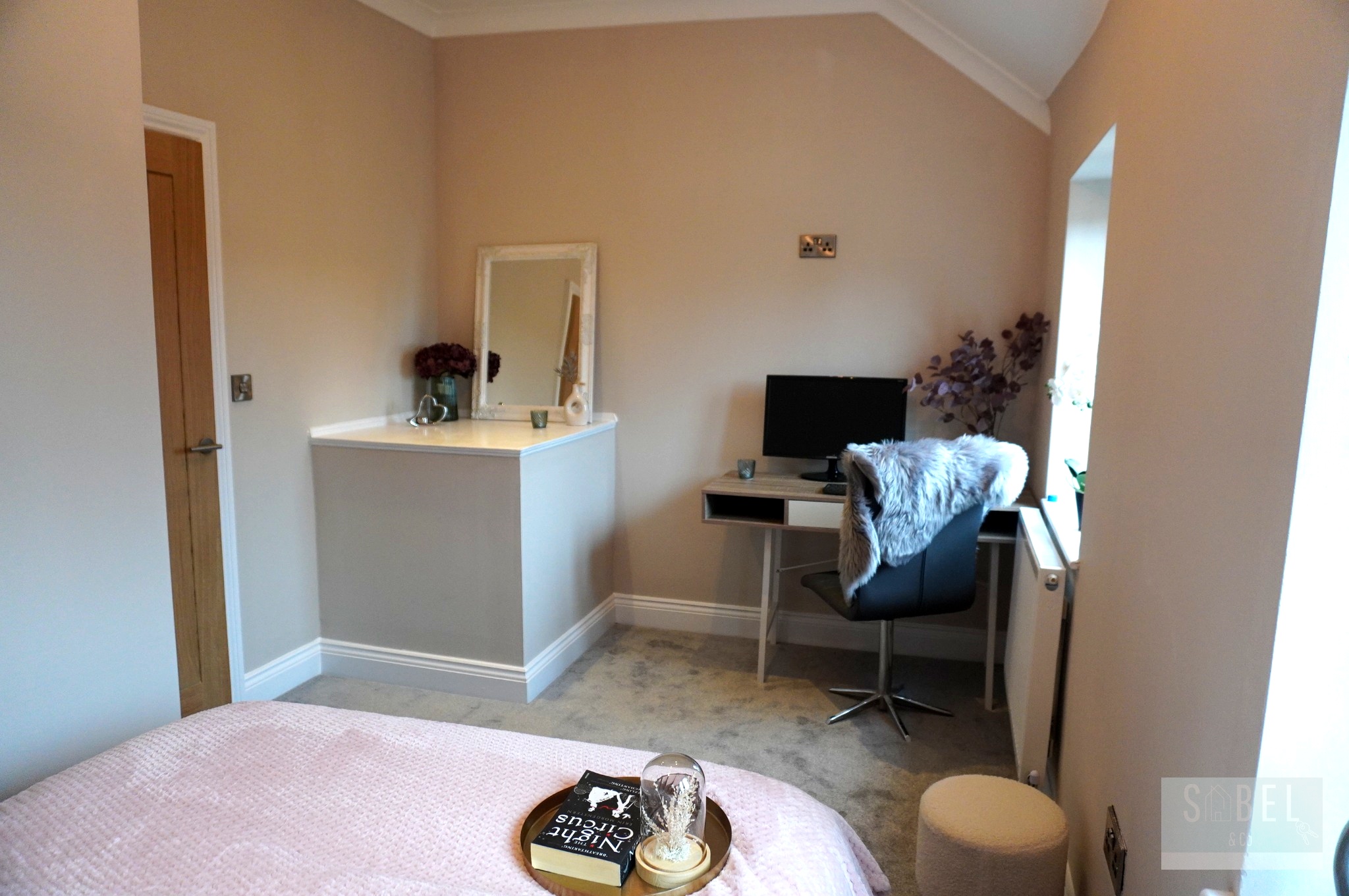 A well presented double bedroom featuring a UPVC double glazed window to the front elevation allowing natural light, central heating radiator and ceiling light. The room offers comfortable proportions with space for freestanding furniture. An existing recessed corner area, likely formerly a fireplace position, provides additional character and potential for decorative or storage use.