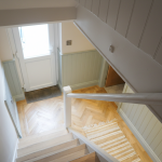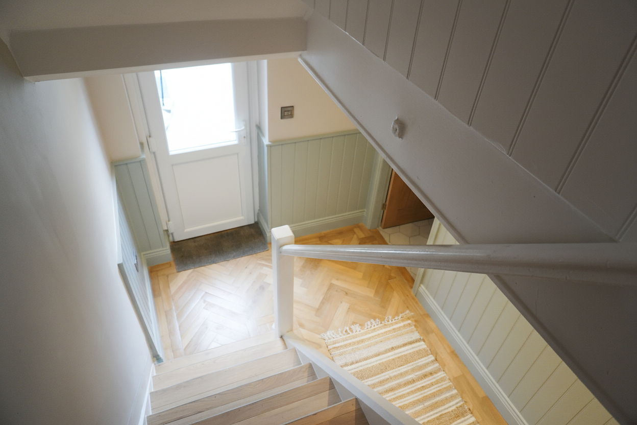 Featuring attractive oak parquet flooring, decorative wall panelling to dado height and feature LED strip lighting to the stairway. UPVC half glazed door provides access to the rear along with a useful understairs storage area.